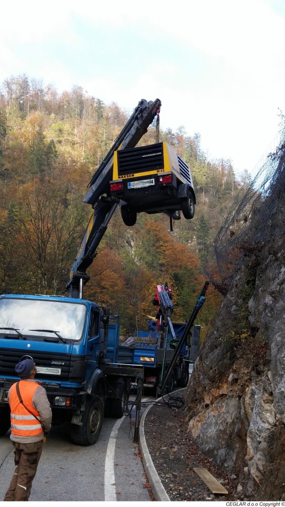 - Gradbeni kompresor KAESER M59, na voljo 1 gradbeni kompresor nazivne moči 5,5m3/min pri delovnem tlaku 7 bar, možnost povečanja na 10,3 bar z močjo 4,7 m3/min. Gradbeni kompresor ustreza najvišjim ekološkim standardom za gradbene stroje. Ima vgrajen EURO 5 motor.